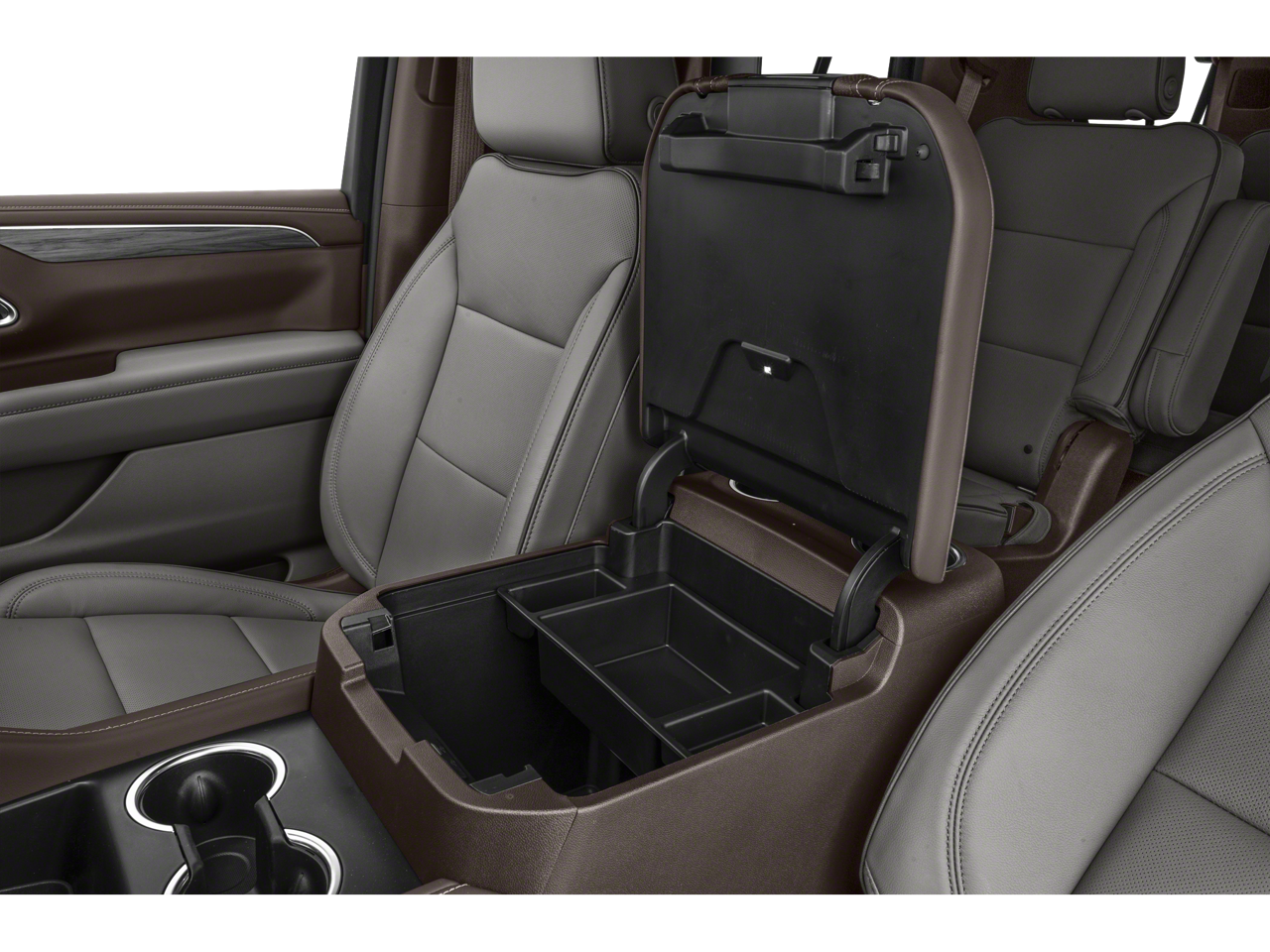 - Console, floor with storage area, cup holders
